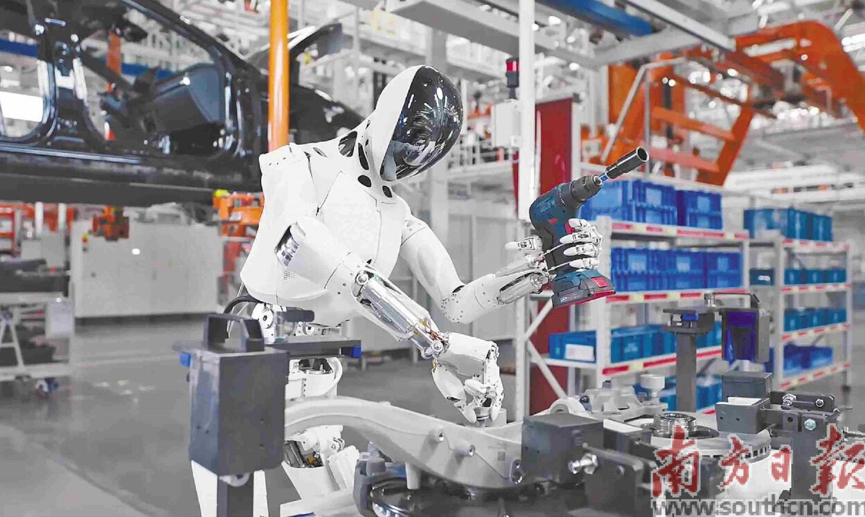 小鹏汽车自主研发的东谈主形机器东谈主IRON已投入工场实训。南边日报记者 张冠军 摄